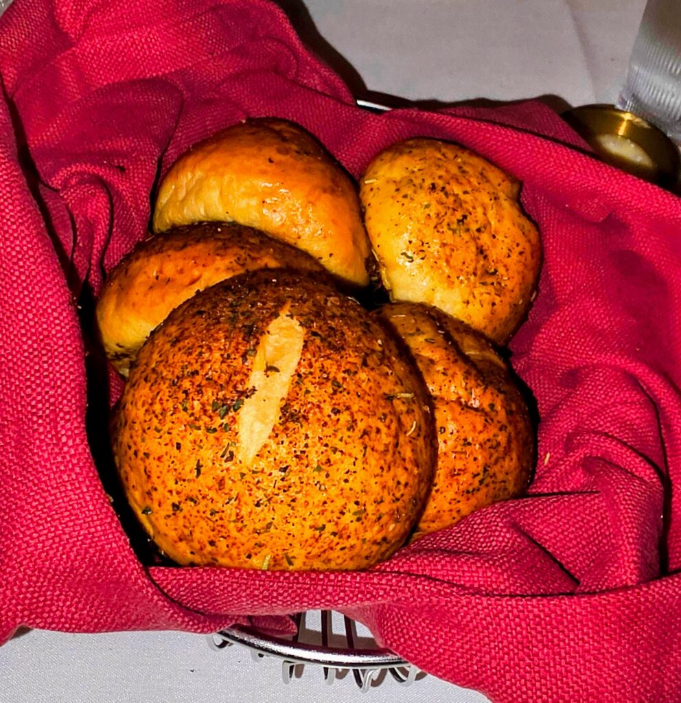 The meal began with warm, buttery rolls, a simple touch perfected by the fact that the butter was tempered for effortless spreading.