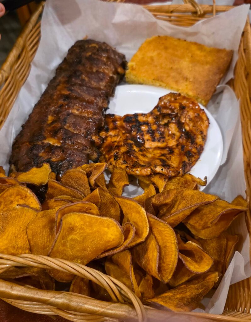 The Grilled Wings set the tone—arriving quickly, steaming hot, exactly as the BBQ gods intended. These were the unexpected heroes of the afternoon. Smoked first, then finished on the grill to lock in char and crispness, they are drenched delightfully in their signature “Sweet” sauce. That smoky, charred skin battling the sweet, tangy heat? It creates a flavor dynamite profile you won’t soon forget.